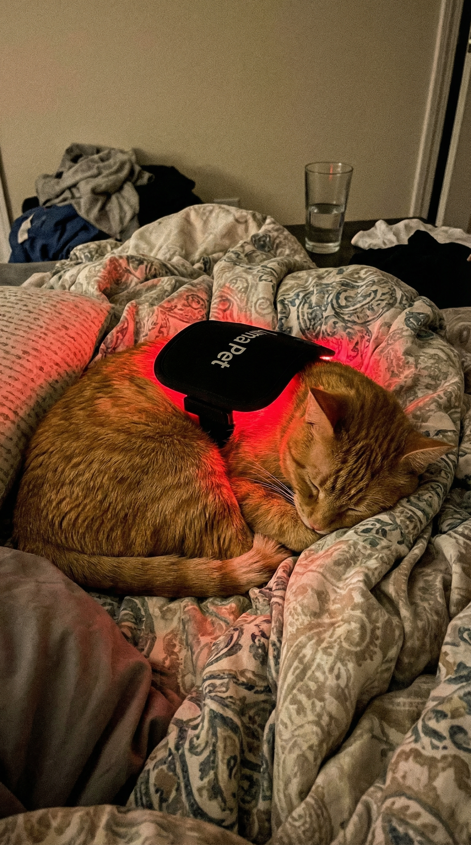 My Golden Retriever has struggled with stiffness for the past year, but since using the LumaPet pad he’s been so much more relaxed. He literally falls asleep with it on, just like in this picture, and I can see him moving around easier after sessions. It feels amazing knowing I’m giving him real relief without meds